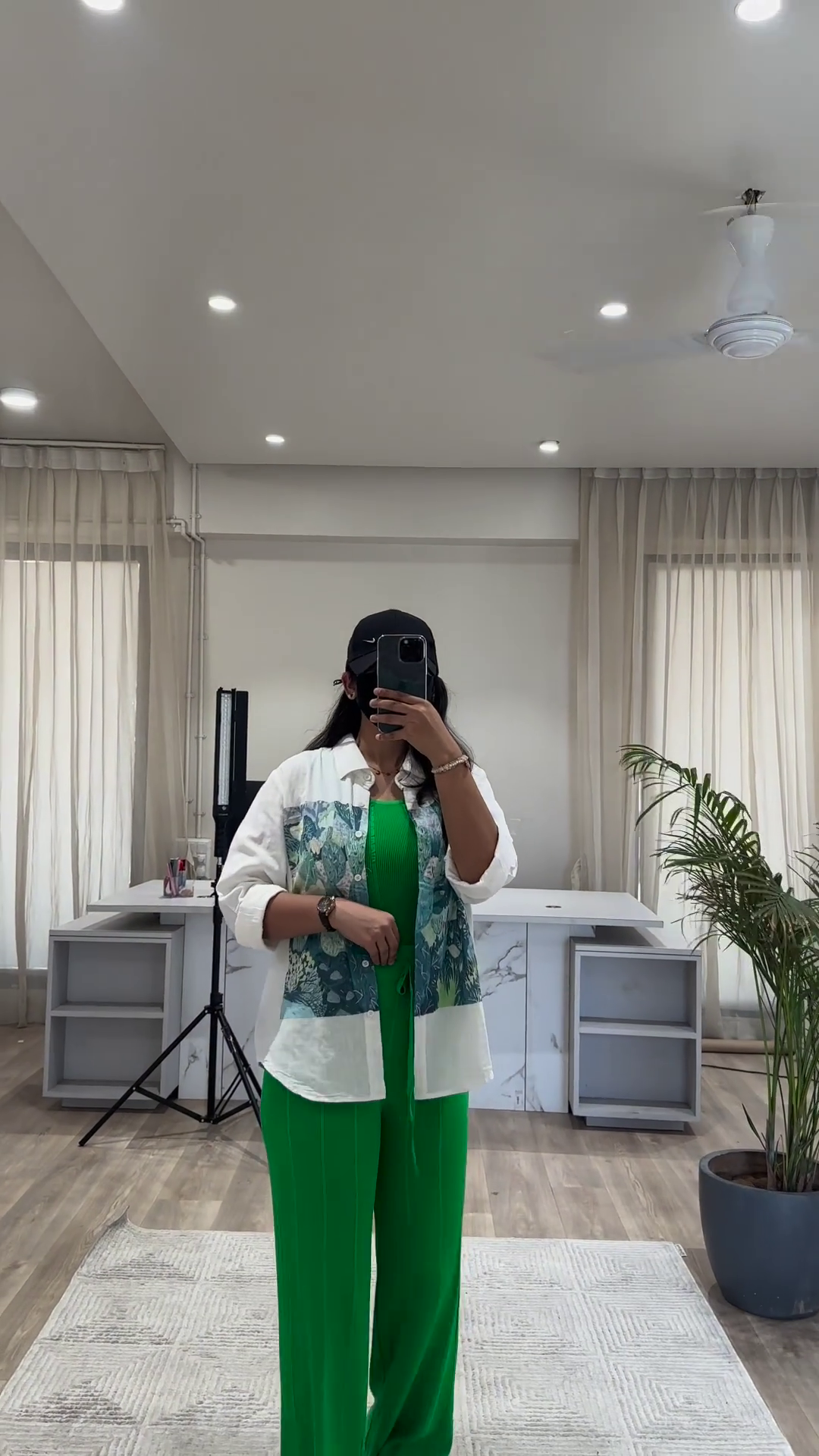 & Free Shippingstylish and bohemian-inspired outfit. The ensemble features a patterned overshirt worn over a knit top, paired with wide-leg pants, and accessorized with a cap and boots. The setting appears to be a well-lit, modern interior space, possibly an office or a studio.