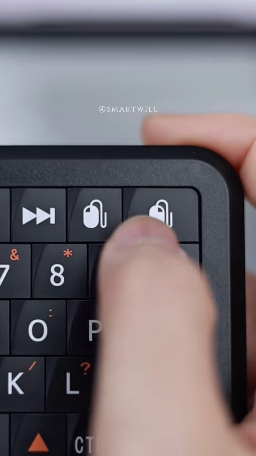 Overall, the image highlights a portable and efficient solution for text input and navigation on a tablet. The compact Bluetooth mini keyboard with its integrated touchpad offers a convenient alternative to on-screen keyboards, enhancing productivity and user experience for mobile computing tasks. The presence of the stylus further suggests a versatile setup for both typing and creative work.