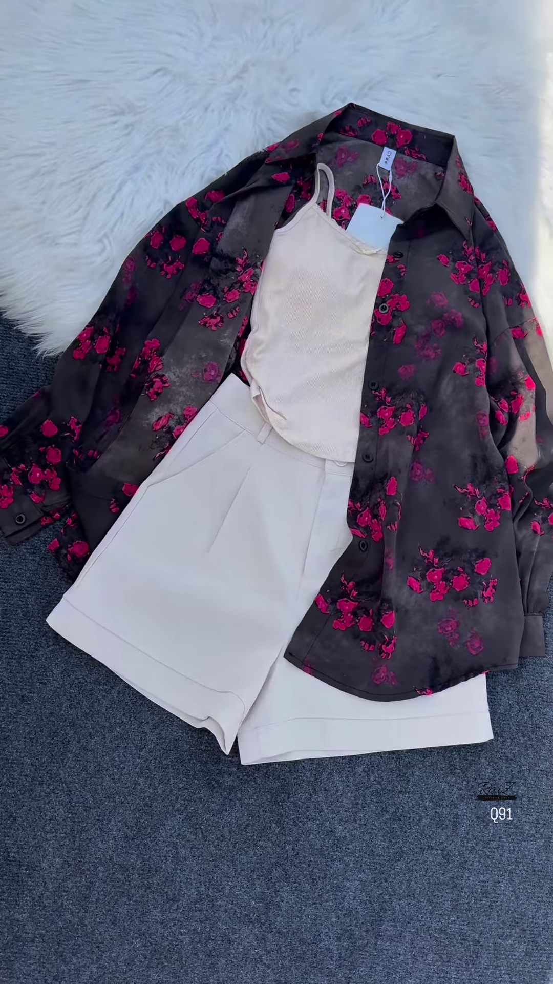Embrace a stylish and comfortable look for the warm climate of Ahmedabad, Gujarat, India, with this chic three-piece set featuring a floral print long-sleeved shirt, a coordinating tank top, and high-waisted shorts. This versatile ensemble allows for various styling options, perfect for casual outings, relaxed days, or light layering in the pleasant weather of Gujarat.