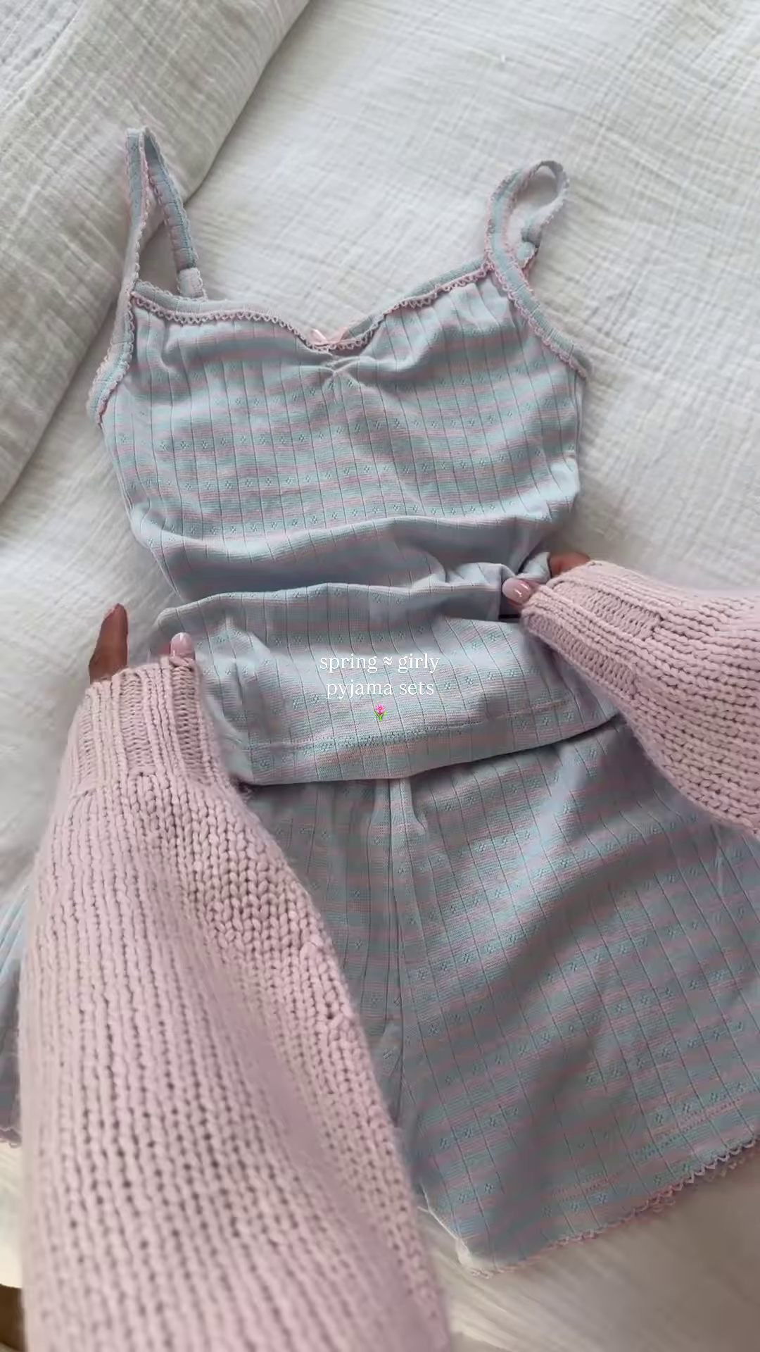 The overall impression of the pajama set is one of softness, comfort, and subtle femininity. The light colors and delicate floral print evoke a feeling of springtime freshness and gentle relaxation. The ruffled hem details add a touch of girly charm without being overly ornate. This pajama set would be perfect for those who appreciate comfortable sleepwear with a touch of understated style. The lightweight fabric suggests it would be ideal for warmer climates or for those who prefer breathable materials for sleep. The simple yet pretty design makes it a lovely addition to any sleepwear collection, promising a comfortable and stylish night’s rest.